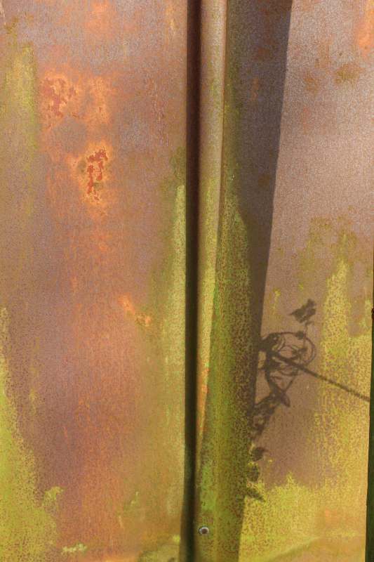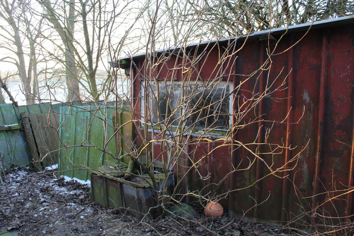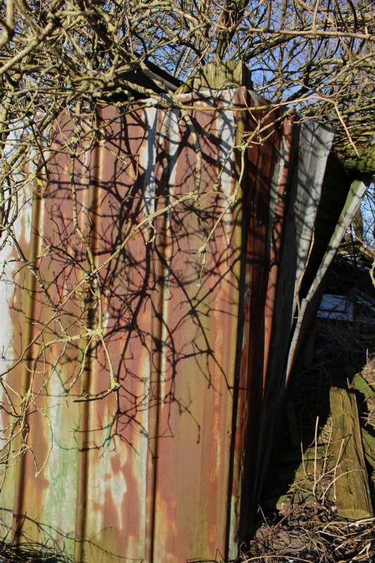 Betagte Reste vergangenen Lebens auf dem Land. Behelfsmäßig errichtete Schuppen, mehr Abdeckungen zum Schutz vor dem rauen nordfriesischen Wetter. Material: alles, was da war, aus Abriss und Strandgut. Inzwischen gealtert und fotografisch von mir entdeckt auf Eiderstedt.