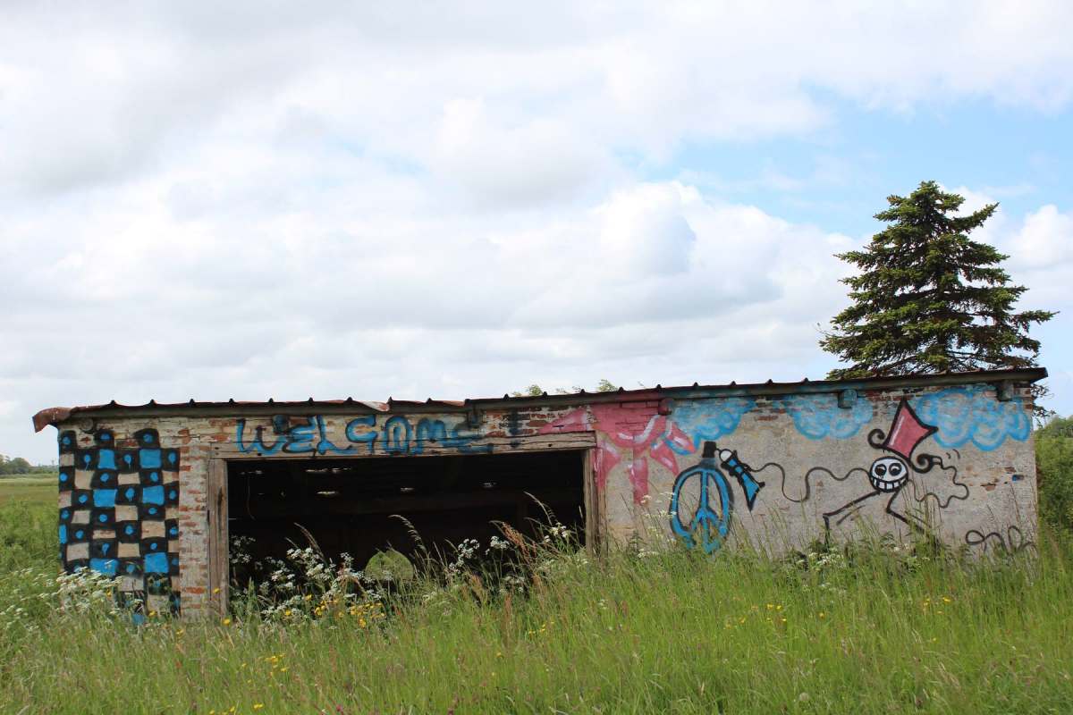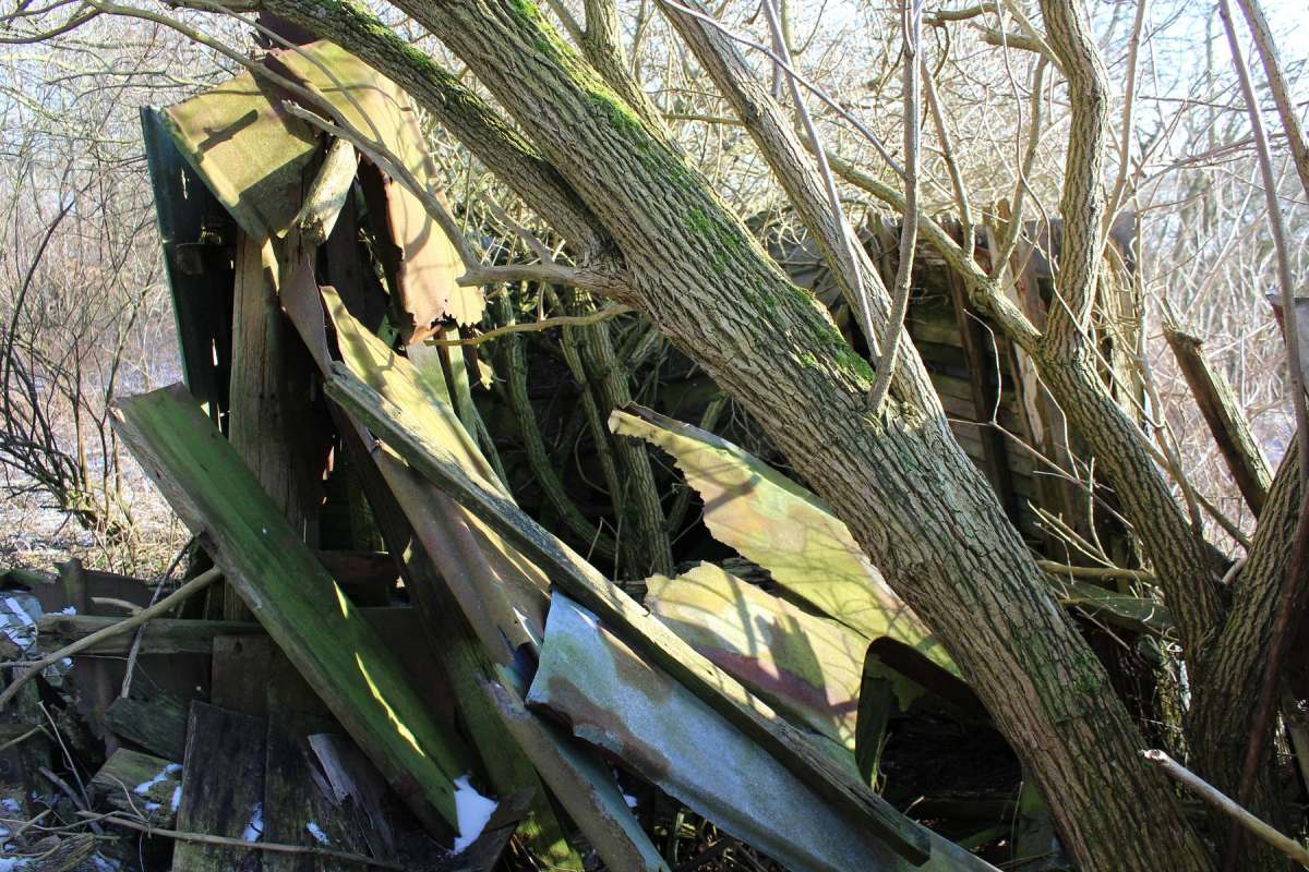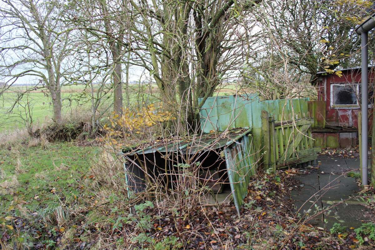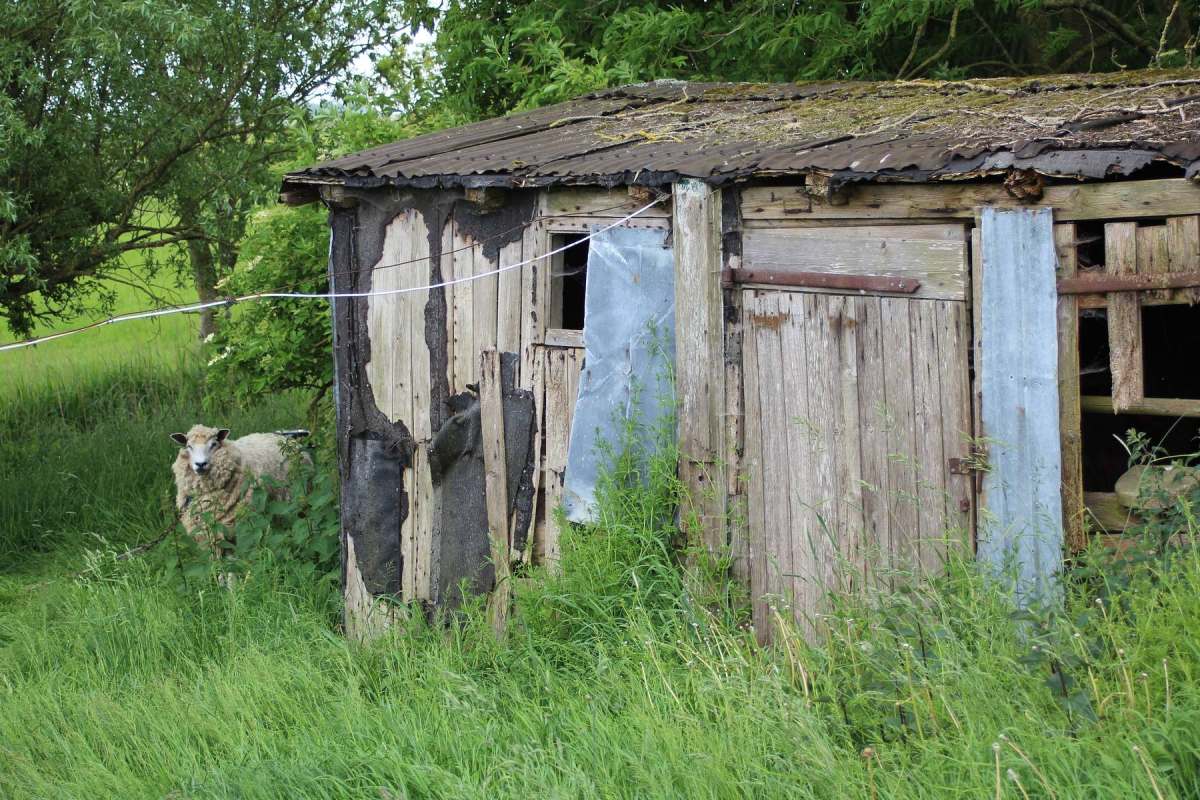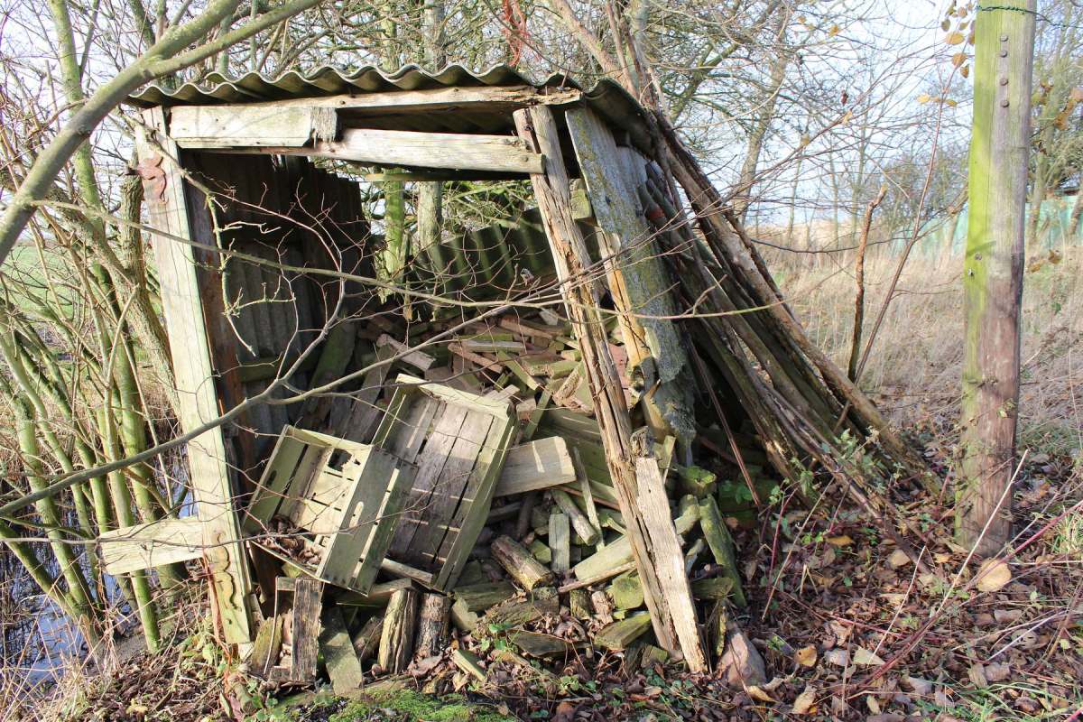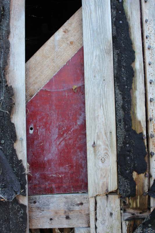 Betagte Reste vergangenen Lebens auf dem Land. Behelfsmäßig errichtete Schuppen, mehr Abdeckungen zum Schutz vor dem rauen nordfriesischen Wetter. Material: alles, was da war, aus Abriss und Strandgut. Inzwischen gealtert und fotografisch von mir entdeckt auf Eiderstedt.